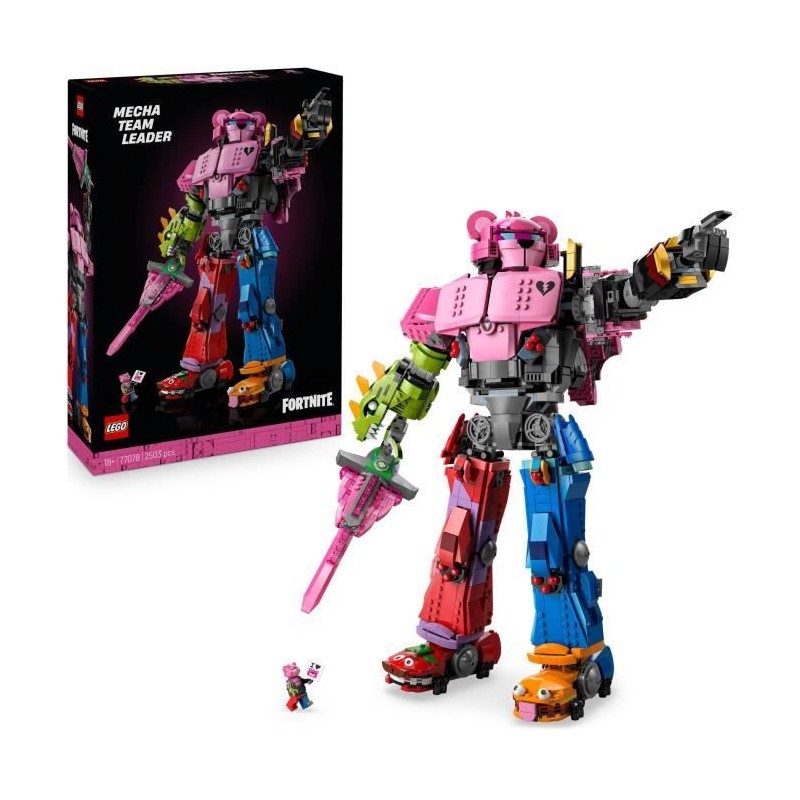Construisez une figurine collector avec le set LEGO® Fortnite® Chef de l'équipe Mécha. Ce kit pour adultes comprend 2503 pieces et une minifigurine détaillée, parfaite pour les fans de Fortnite. Idéal pour les passionnés de jeux vidéo et de maquettes a collectionner.