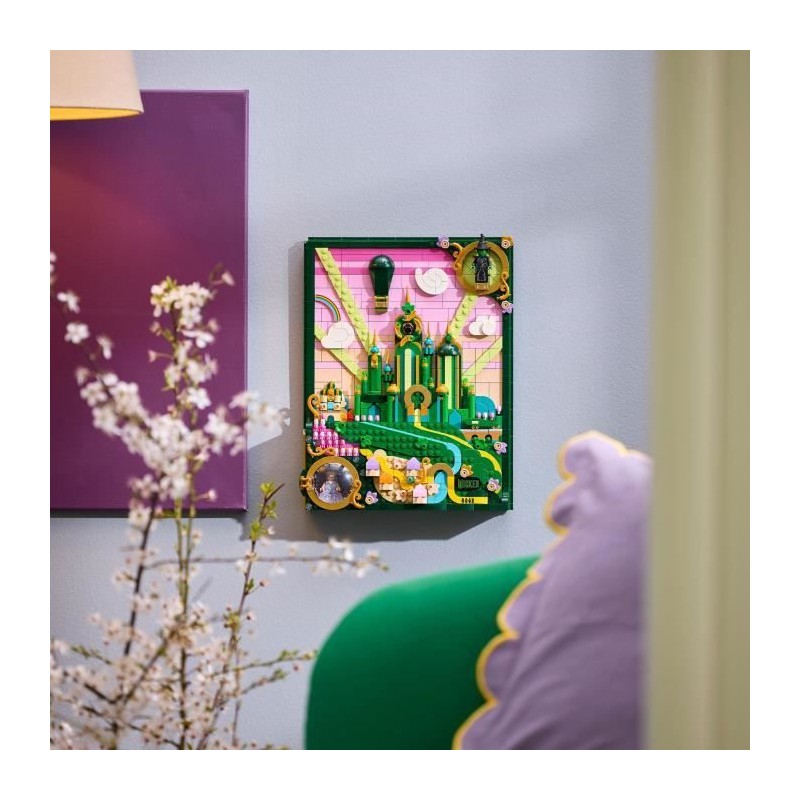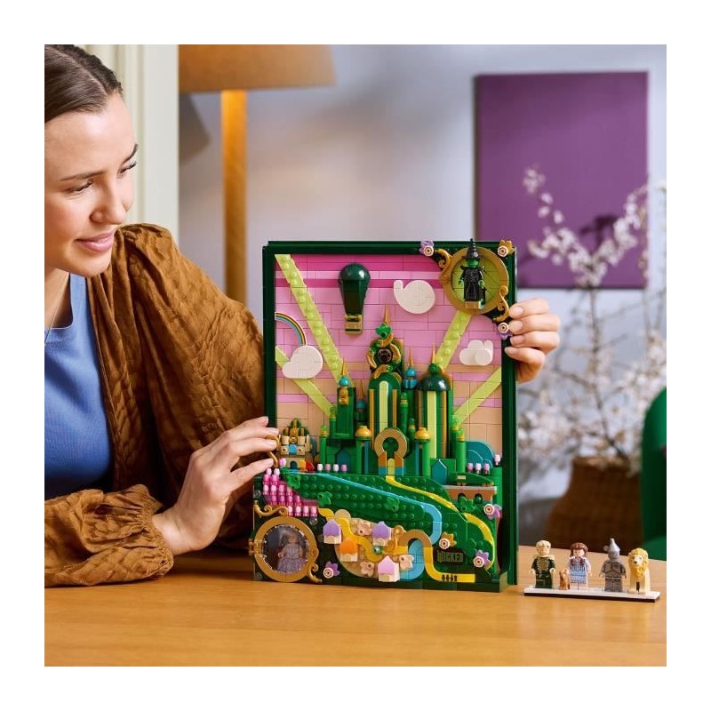 Cadeau LEGO® artistique détaillé, a construire et a exposer, pour les adultes fans des films Wicked, avec 7 personnages et des lieux culte.