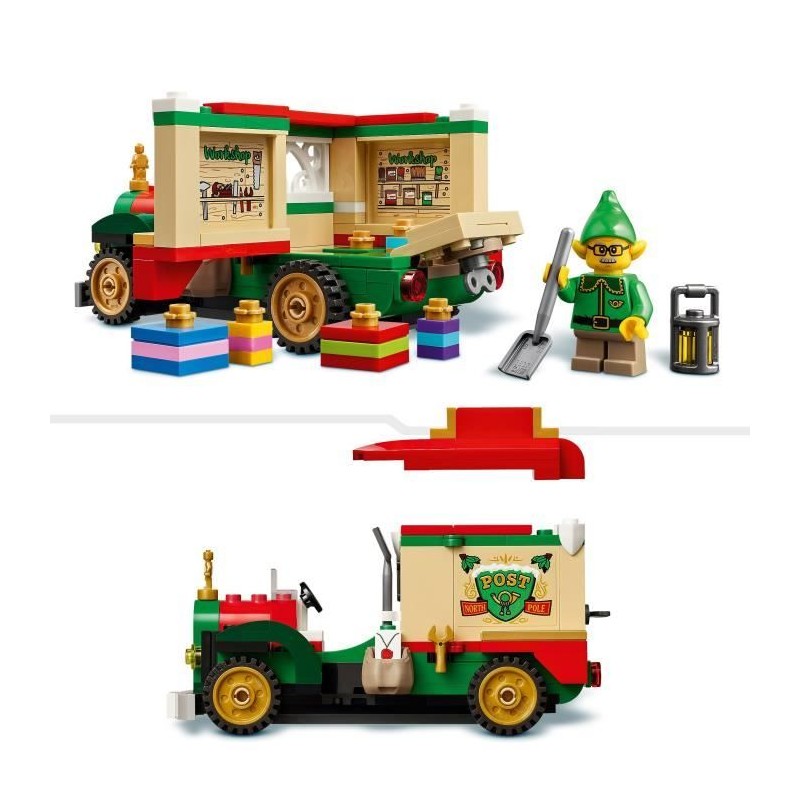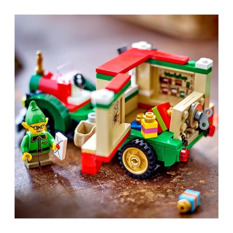 Plongez dans le plaisir des fetes de fin d'année avec un camion de Noël LEGO® qui comprend des cadeaux et une adorable minifigurine de lutin.
