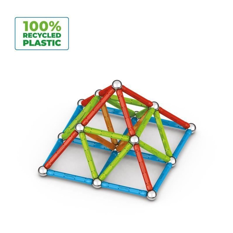 Avec Geomag Classic, construisez des structures 3D a l'infini grâce aux forces magiques du magnétisme, libérant ainsi créativité et imagination. Les tiges magnétiques, les spheres en acier et les panneaux de différentes formes forment le systeme de construction magnétique qui a fait la renommée de la marque dans le monde entier. Geomag Classic propose plusieurs gammes de produits : Classic, Classic Panels, Supercolor, Glitter, Glow et E-Motion. Toutes ces gammes vous permettent de créer des structures plus grandes, plus performantes et plus stables. Geomag est fabriqué a partir de plastique 100 % recyclé et est désormais un jouet véritablement écologique, avec les memes couleurs vives et les memes normes de qualité élevées que tous nos ensembles Geomag originaux. CIBLE 3-99 ANS, TIGES MAGNÉTIQUES, SPHeRES EN ACIER, PANNEAUX EN PLASTIQUE, VAPEUR / ÉDUCATIF, STRUCTURES 2D/3D a L'INFINI / AMÉLIORE LA CONCENTRATION / PLASTIQUE 100 % RECYCLÉ ÉCOLOGIQUE BOÎTE GEOMAG, TOUJOURS AVEC VOUS Fabriqué en plastique 100 % recyclé, transparent et format de poche ! Disponible dans tous les nouveaux ensembles de la gamme Classic recyclée ! La gamme Geomag Supercolor 100 % recyclée est destinée a tous ceux qui aiment jouer avec une explosion de couleurs. Le plastique recyclé écologique Geomag utilisé pour les tiges, les panneaux et les bases s'harmonise parfaitement avec cette palette de couleurs, ravissant meme les esprits créatifs les plus exigeants. Le coffret 385 comprend 44 tiges magnétiques de 4 couleurs différentes, 44 spheres métalliques, 2 plateformes carrées, 3 plateformes pentagonales. 4 boîtes Geomag sont incluses.