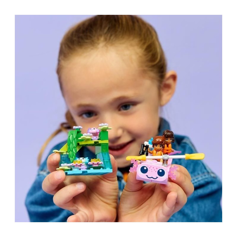 Ce jeu sur les axolotls inspirera une infinité d'histoires aux enfants et inclut un bateau, 2 personnages, 2 axolotls, des plantes et des fleurs.