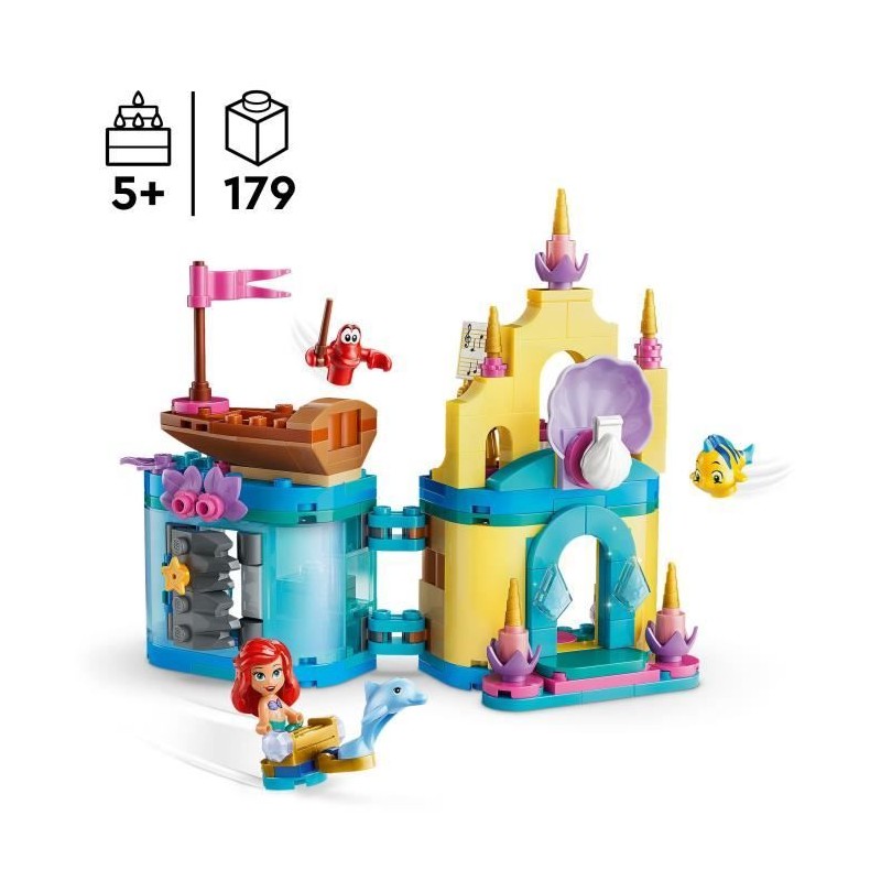 Jeu de construction La petite sirene de Disney avec un mini château, un petit bateau, des accessoires et 3 personnages LEGO® | Disney Princess.