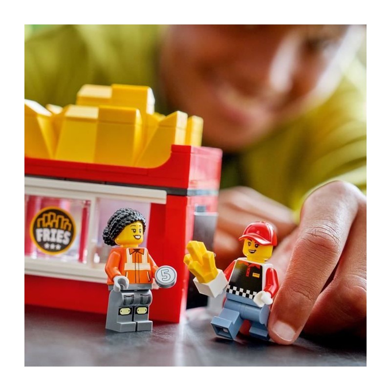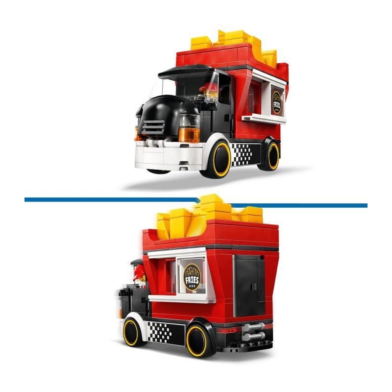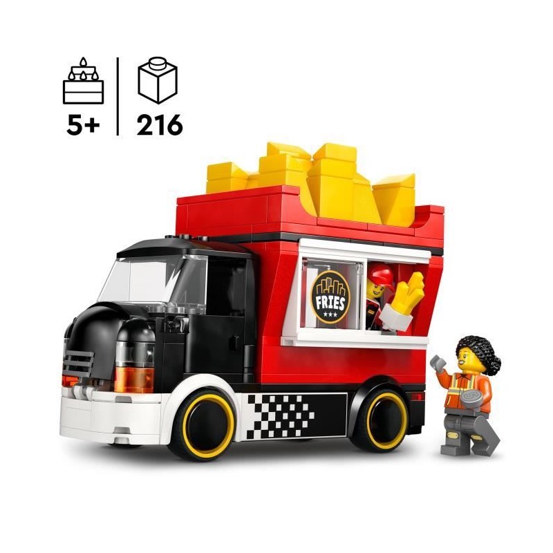 Les enfants peuvent servir les meilleures frites de LEGO® City avec ce food-truck incluant les minifigurines d'un vendeur et d'une cliente.