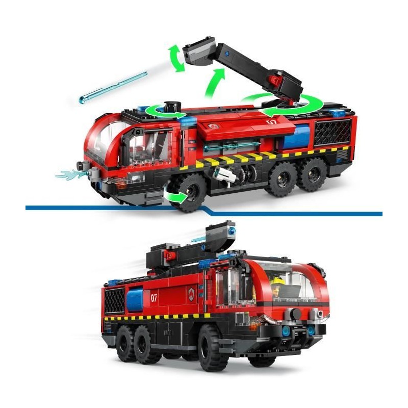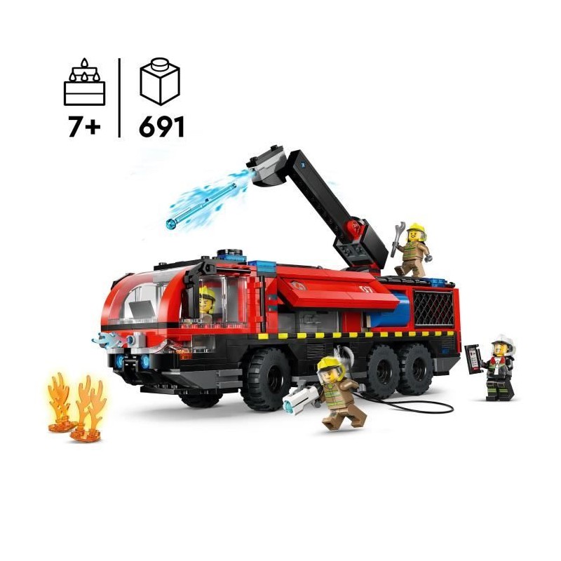 Équipez vos jeunes héros pour des heures de jeux passionnants avec Le camion de pompiers de l'aéroport LEGO® City, 4 minifigurines et des accessoires.