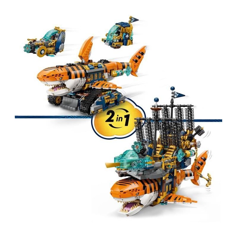 Plongez dans une aventure LEGO® DREAMZzz(TM) avec un requin transformable, 2 options de construction pleines d'action et 5 minifigurines.