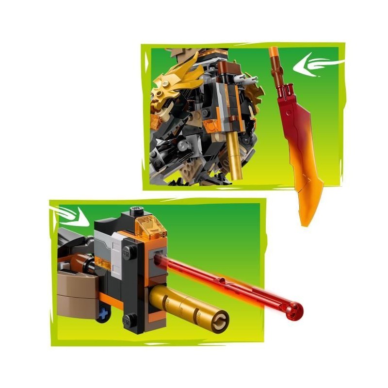 Recréez l'action de la saison 4 de la série TV NINJAGO® Le soulevement des dragons avec La mission du robot Cole et du dragon Zane LEGO® NINJAGO.