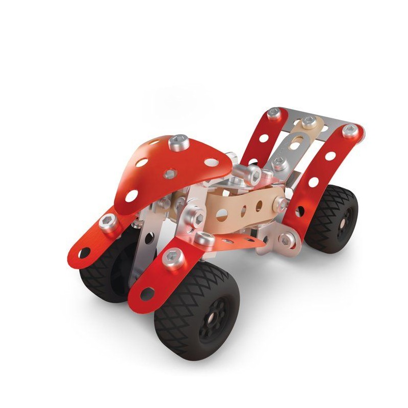 Construis un quad réaliste avec ce coffret Meccano : pieces métal et plastique, outils inclus, montage pas a pas pour développer logique, dextérité et créativité. Une fois assemblé, expose ton modele ou imagine de nouvelles constructions. Idéal pour les jeunes ingénieurs en herbe !