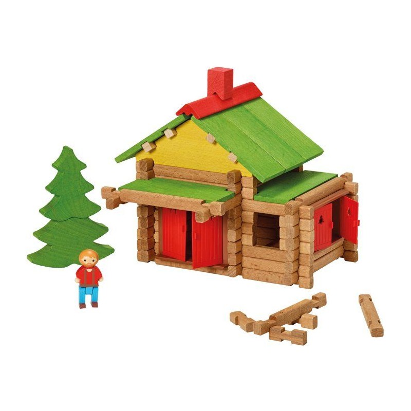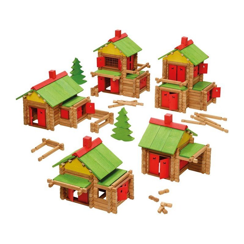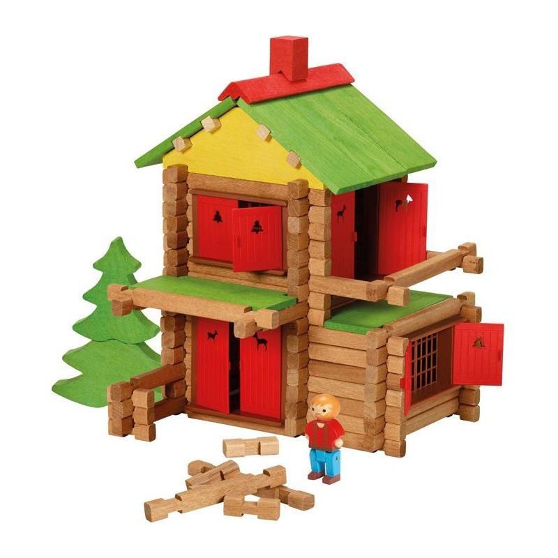 Le Chalet en Bois Jeujura 165 pieces offre encore plus de possibilités ! Fabriqué en bois naturel et teinté, il permet de monter et démonter de nombreuses constructions. La notice guide les enfants dans la réalisation d'un véritable chalet, mais la liberté de création reste infinie. Le coffret (28 × 28 × 14 cm) est pratique a ranger et a transporter. Un jeu traditionnel, qualitatif et indémodable qui accompagne les enfants des 5 ans dans leurs premiers gestes de bâtisseurs.