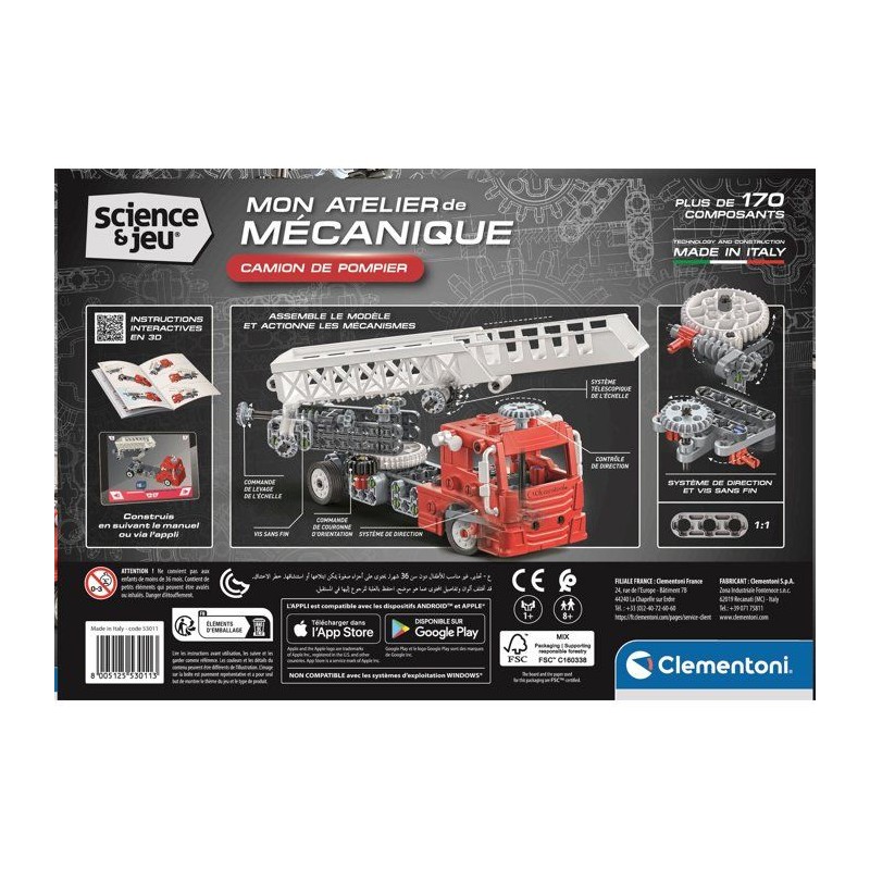 Un coffret de construction pour s'amuser a assembler un superbe camion de pompier. Le modele assemblé comprend des roues et des engrenages pour reproduire un systeme de direction fonctionnel.