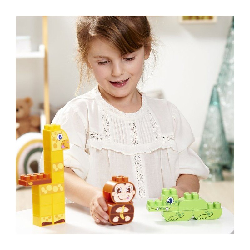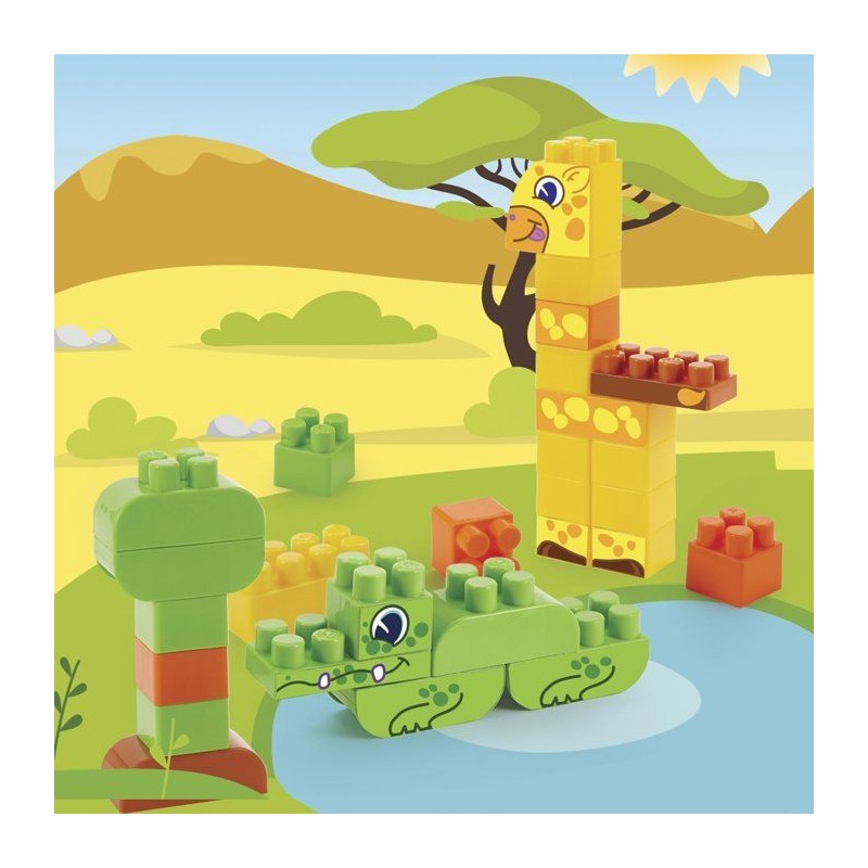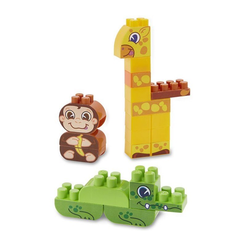 Baril de rangement rempli de 70 pieces dont 3 animaux a construire : une girafe, un singe, un crocodile. Des 18 mois. Origine France Garantie,