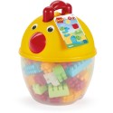 Baril en forme de poule garni de 90 briques multicolores pour faire toutes sortes de constructions dont des animaux. Des 18 mois. Origine France garantie.
