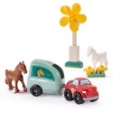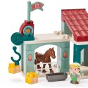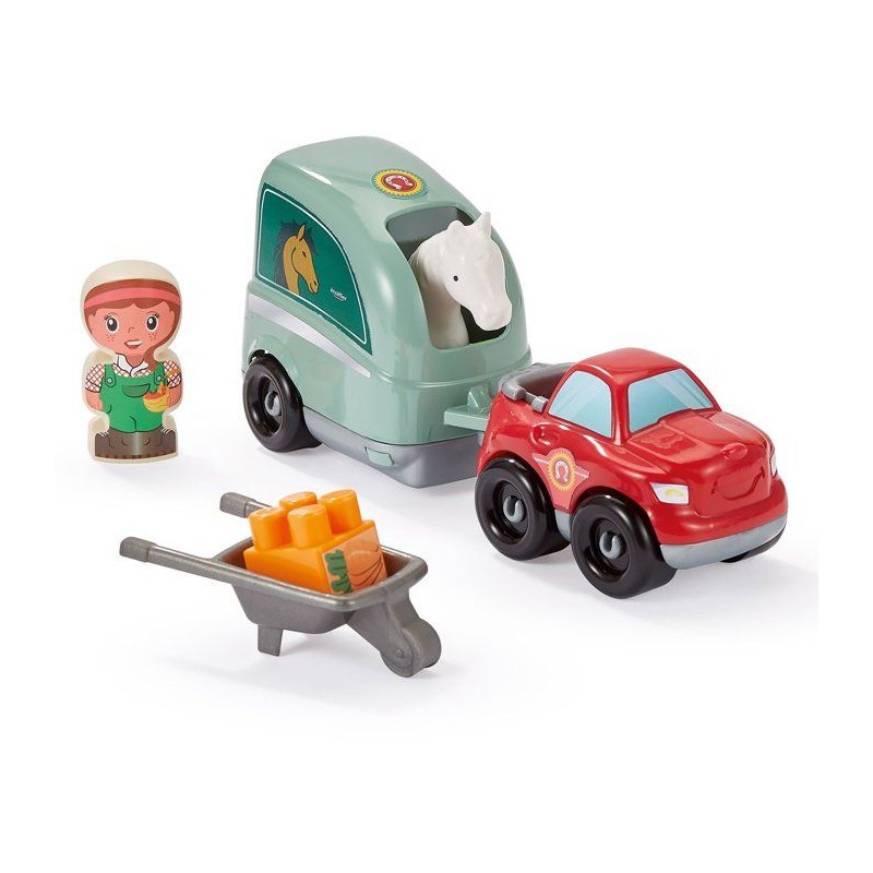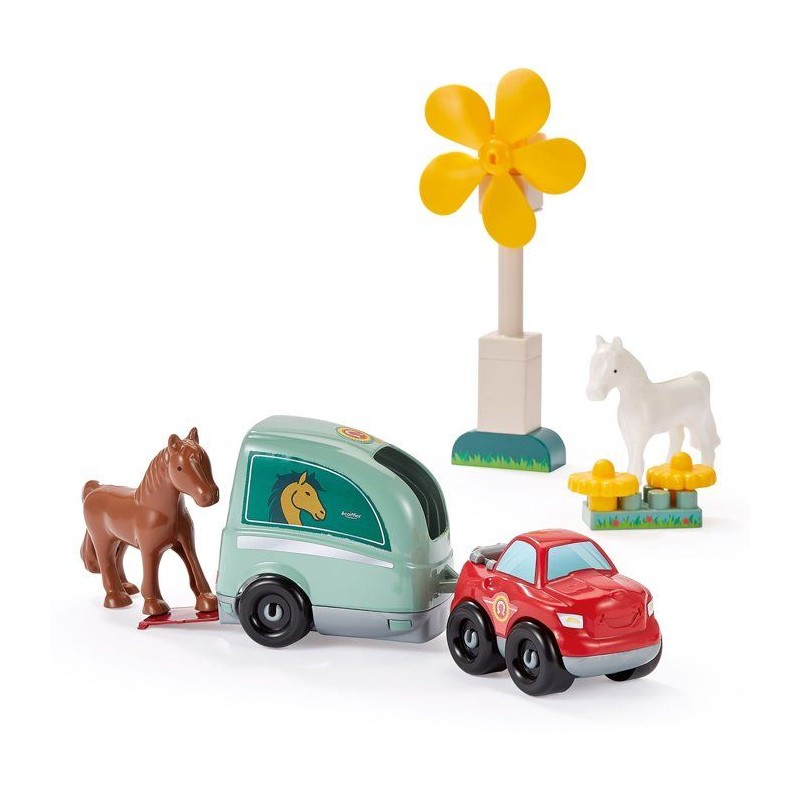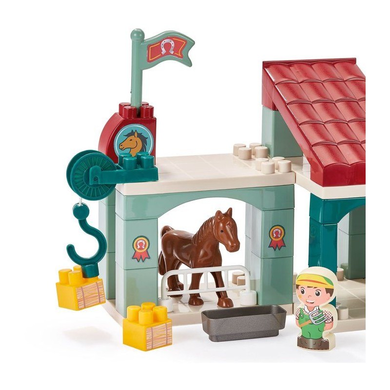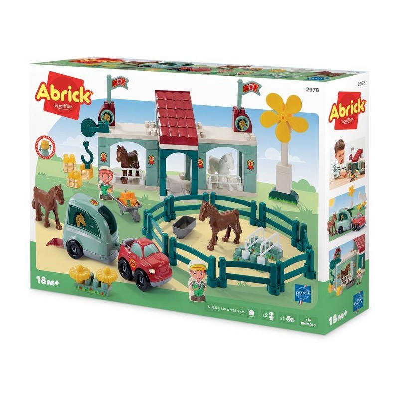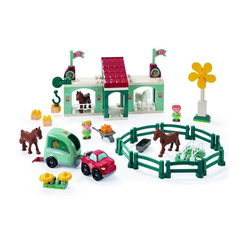 Centre hippique a construire avec des chevaux, 1 manege, 1 pick-up avec son van, 1 éolienne, 2 peronnages et de nombreux accessoires digne d'un centre équestre ! Des 18 mois. Origine France Garantie.