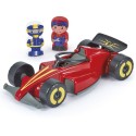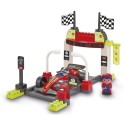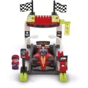 Stand d'arret pour formule 1 comprenant la structure a construire, une formule 1 et deux personnages.