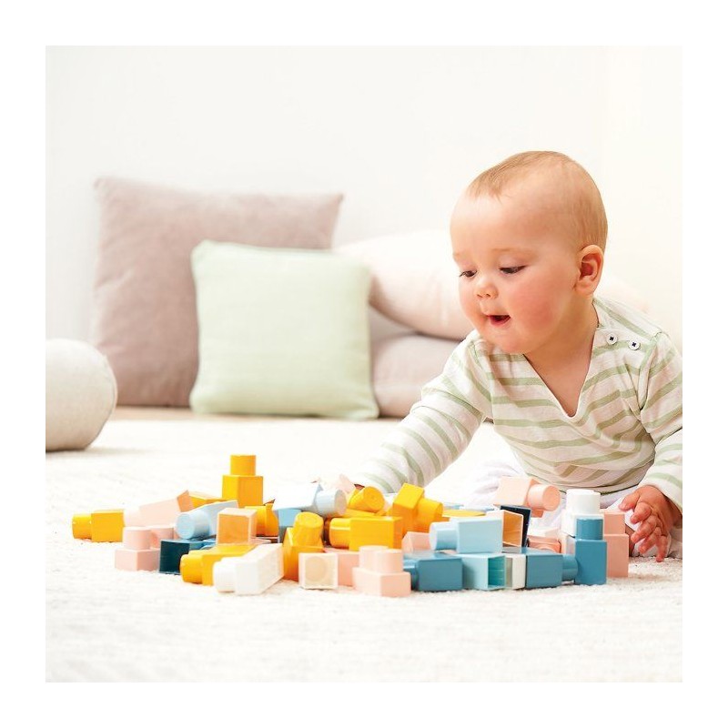 Sac de rangement comprenant 60 briques aux couleurs douces qui aideront votre enfant a développer son imagination et sa motricité fine. Des 12 mois. Origine France Garantie