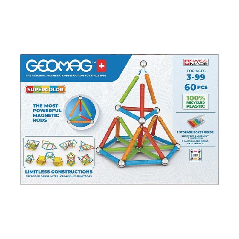 Jeu de construction magnétique - GEOMAG - Supercolor Recycled 60 pieces - Créativité - Magnétisme - Écoresponsable