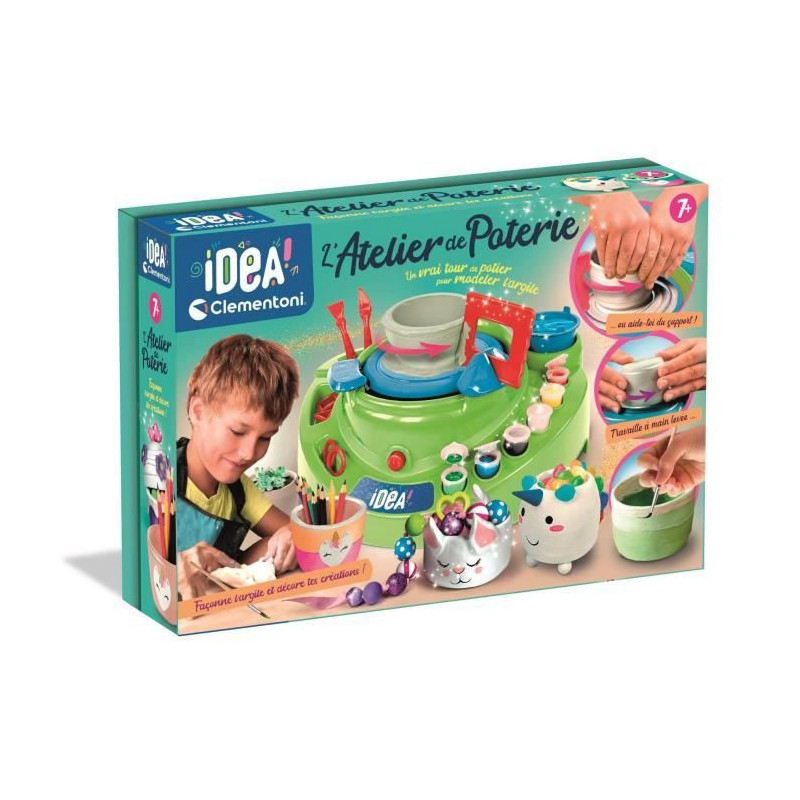 - Laisse ta créativité prendre forme en réalisant de tes mains de superbes créations en argile. - Ce tour de potier électrique est fourni avec des moules, de la peinture et de nombreux outils. - Les moules permettront aux débutants de faire leurs premieres créations facilement avant de s'essayer a la technique traditionnelle de modelage. - Le coffret contient également un bac de réserve d'eau pour laisser l'argile humide durant le modelage et faciliter le travail créatif.