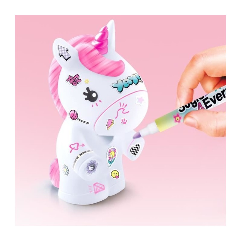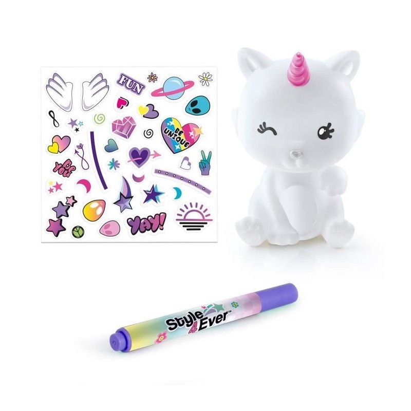 Décore ta mini figurine avec 35 stickers, strass et un marqueur. Allume-la pour diffuser une douce lumiere multicolore. Parfaite pour décorer une chambre en journée et apaiser la nuit grâce a sa lumiere douce. Existe en Licorne, Licorne arc-en-ciel, Dinosaure, Chat et Panda.