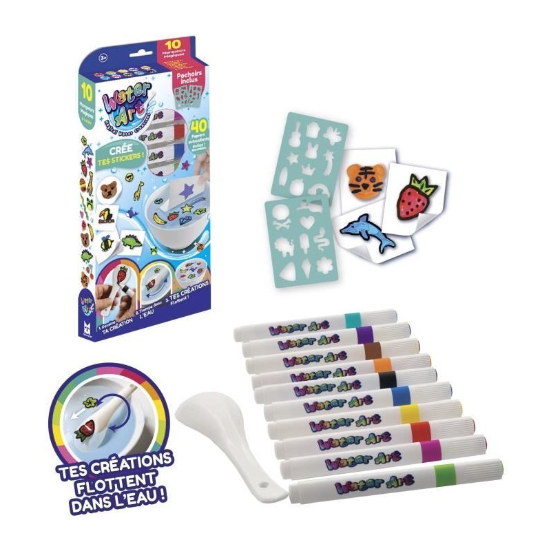 Libere ta créativité avec le Kit Water Art ! Dessine, trempe et regarde tes créations flotter a la surface de l'eau. Avec ses autocollants inclus, ce kit est parfait pour les enfants des 3 ans qui souhaitent explorer l'art de maniere ludique et magique.