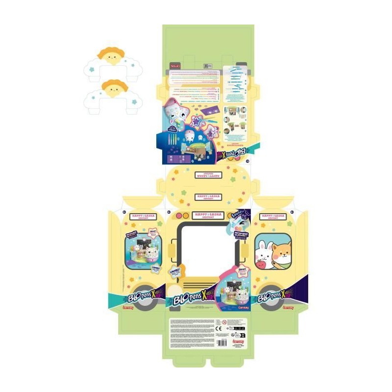 Prépare-toi pour une aventure rigolote avec Happy Sasha dans son incroyable bus ! Utilise tes Blopens et pochoirs pour personnaliser Sasha comme tu le souhaites. Cette fois. Sasha t'invite a monter dans son bus pour un voyage amusant et coloré. Pour rendre l'expérience Blopens encore plus immersive. le packaging et les accessoires sont sur le theme d'une escapade amusante a bord d'un bus magique avec un arret a l'école de Sasha. En plus. découvre aussi le mini ami surprise de Sasha. donne-lui un nom et commence a le décorer avec tes Blopens ! Tellement fun ! Pochoirs réutilisables. Bouchons lavables.