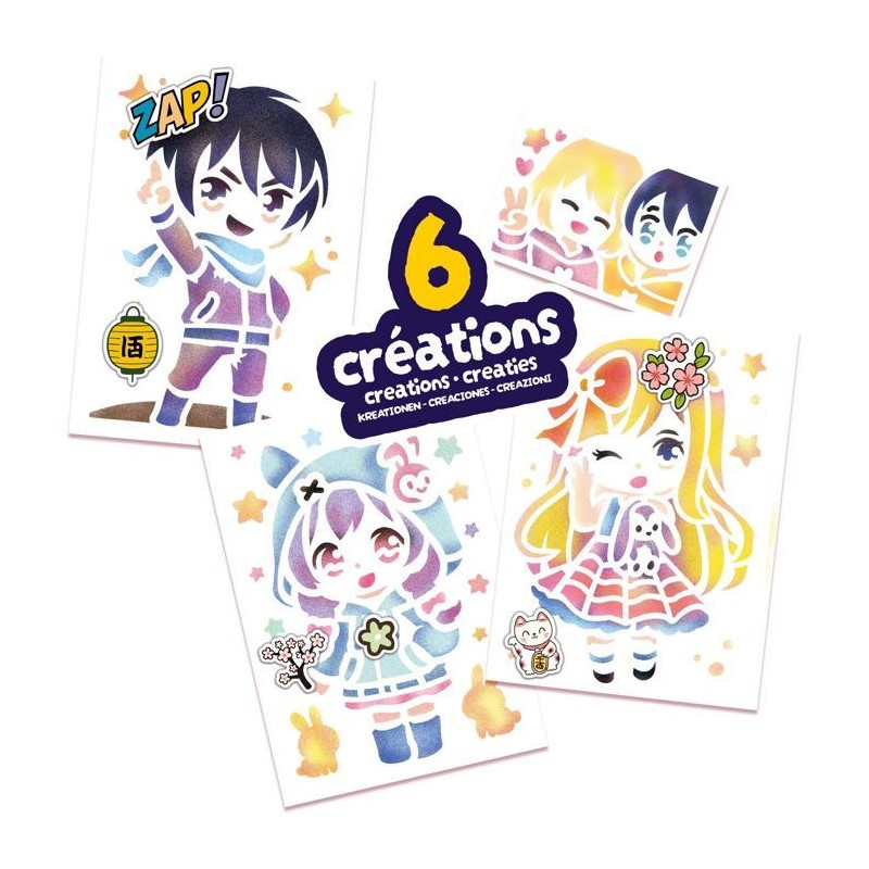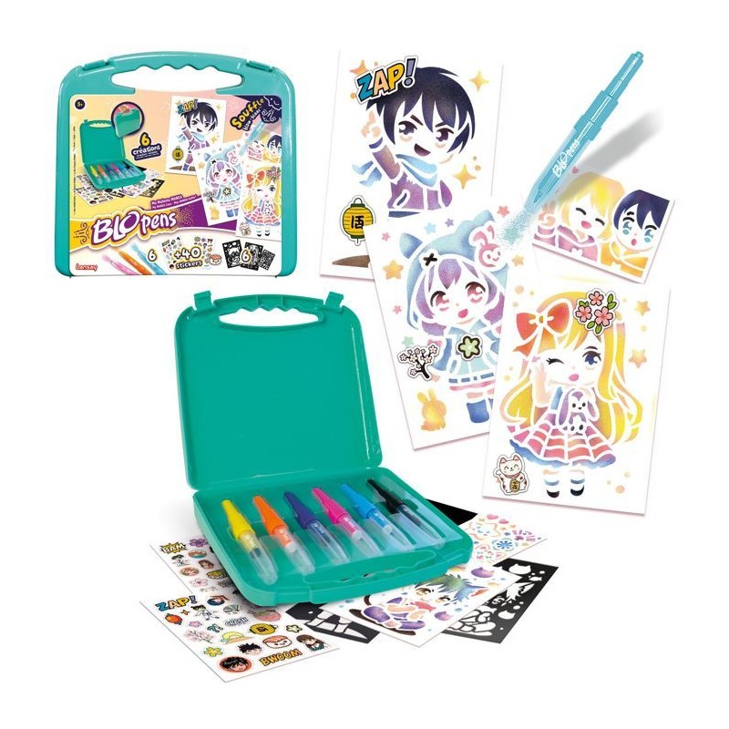Explore l'univers Manga avec ta mallette créative Blopens ! Grâce a tes Blopens et aux pochoirs inspirés des codes manga, crée des dessins stylés a effet aérographe, où tu veux, quand tu veux. Avec son format pratique, cette mallette t'accompagne partout : a la maison, chez des amis ou pour tes moments de détente. Imagine, souffle et donne vie a tes héros, créatures ou décors venus du monde du manga ! Pochoirs réutilisables. Bouchons lavables.