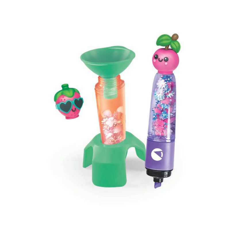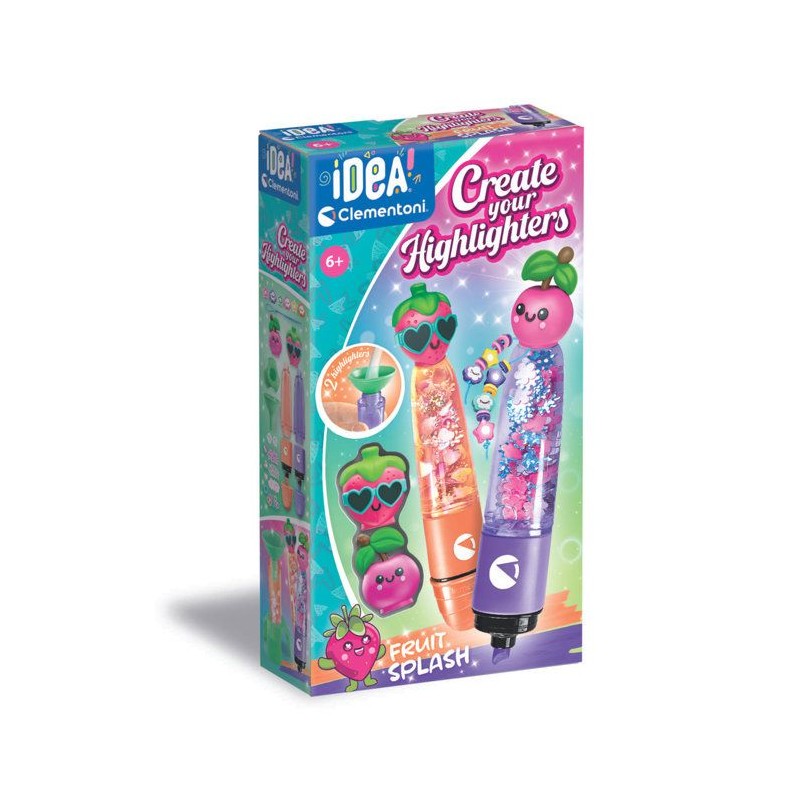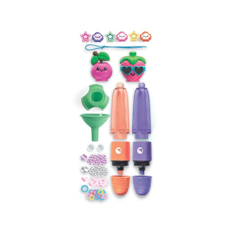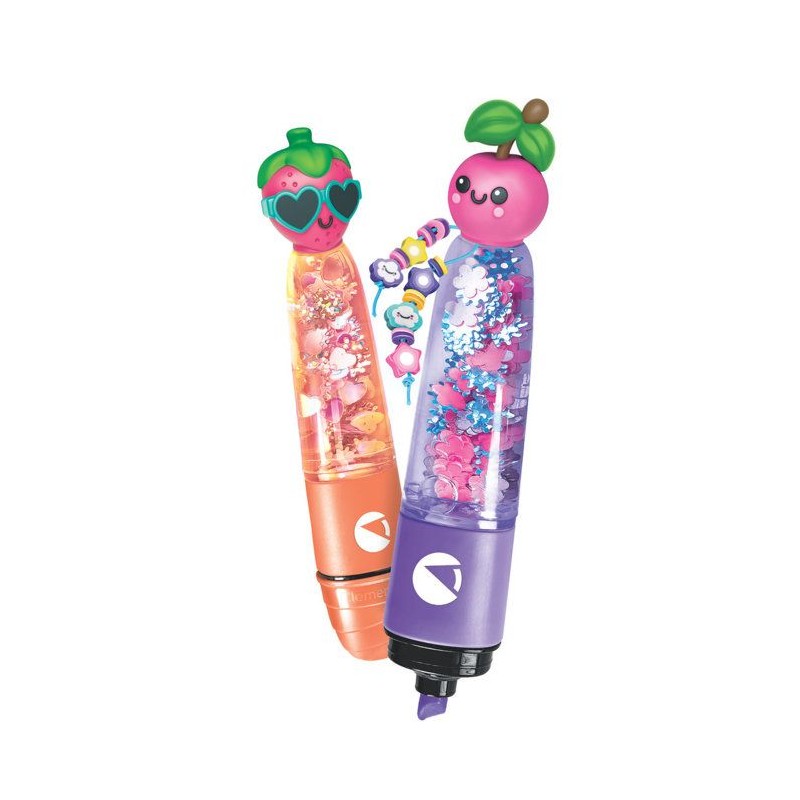 Un coffret créatif original qui permet d'assembler 2 surligneurs et de les personnaliser avec différentes décorations sur le theme des Fruits.