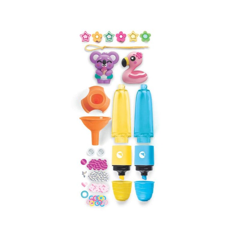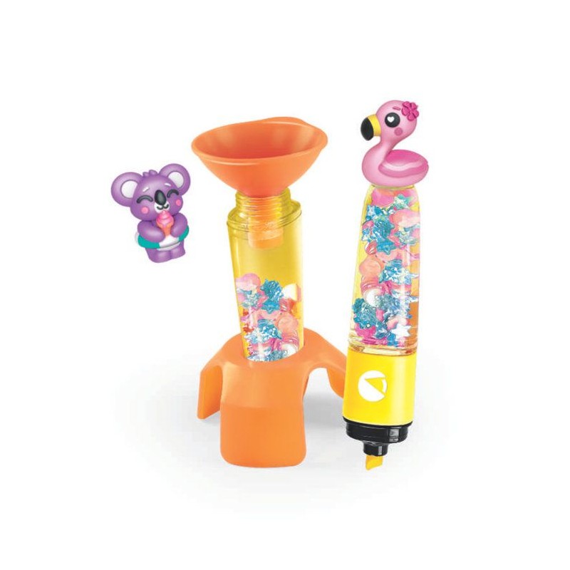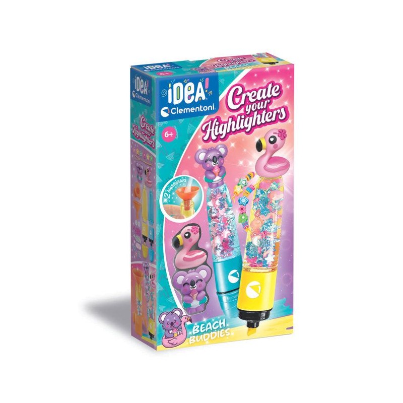Un coffret créatif original qui permet d'assembler 2 surligneurs et de les personnaliser avec différentes décorations sur le theme SUMMER FRIENDS.