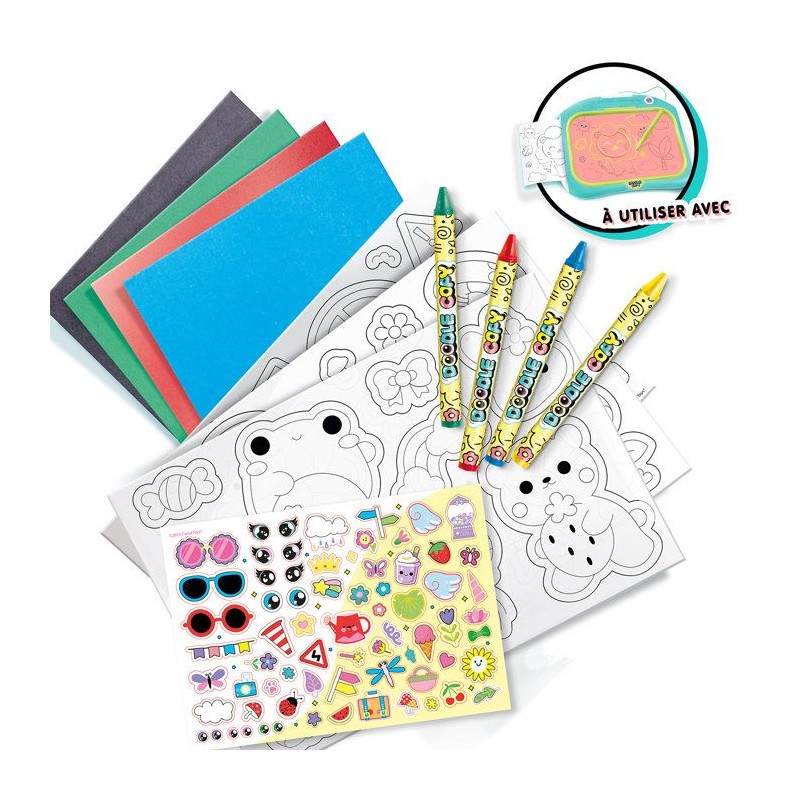 Prolonge le plaisir avec le kit de recharge Doodle Copy ! Ce pack contient de nouveaux modeles a tracer ainsi que des feuilles supplémentaires pour multiplier tes créations. Continue d'apprendre a dessiner, imprime tes chefs-d'oeuvre et colorie-les a l'infini ! La machine Doodle Copy est indispensable a l'utilisation de cette recharge. Contient 6 feuilles de papier carbone, 10 feuilles blanches, 3 planches de modeles, 4 crayons, 1 planche de stickers. Taille : L22.5 x P1.5 x H33 cm PRODUIT DEVELOPPE EN FRANCE - SPECIALEMENT POUR LES ENFANTS A PARTIR DE 4 ANS.
