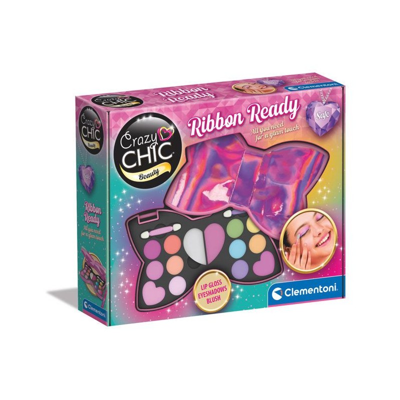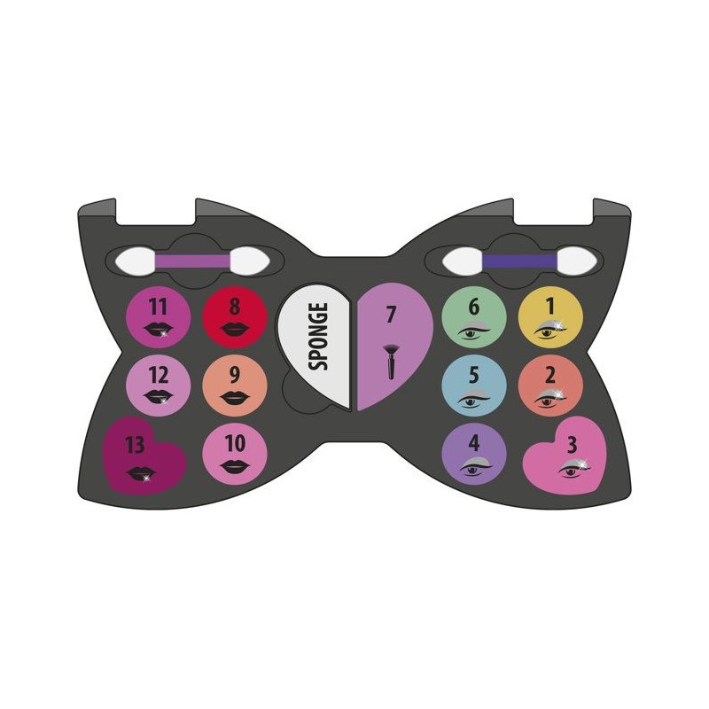 CLEMENTONI - Trousse Noeud-Papillon - Palette de maquillage pour enfant - Fards paupieres, brillants levres, éponge, pinceaux -