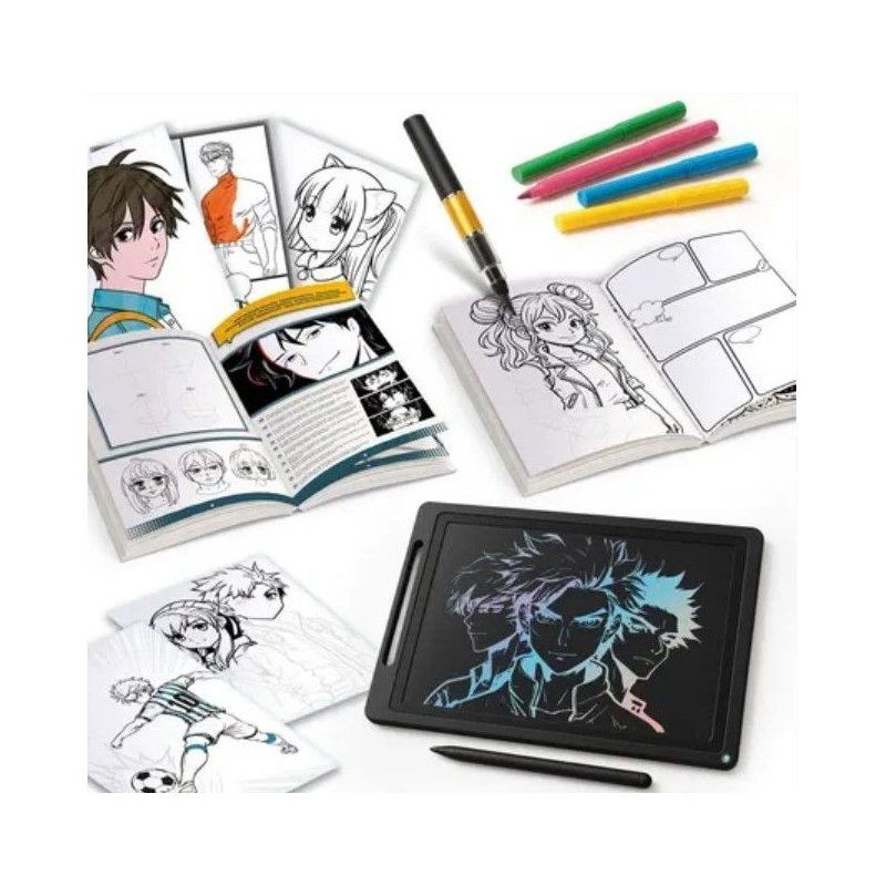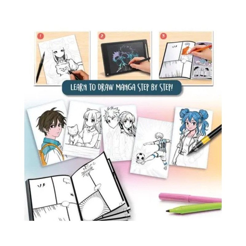Apprends a dessiner ton tout premier manga ! Tu reves de créer des personnages, des expressions et des histoires comme dans les vrais mangas ? Ce kit créatif te guide pas a pas pour te lancer facilement dans l'univers du manga japonais ! Avec le guide illustré, la tablette LCD pour t'entraîner, des stickers et un livret spécial BD, tu as tout pour créer ton propre manga de A a Z ! A aprtir de 7 Ans - Fabriqué en Italie