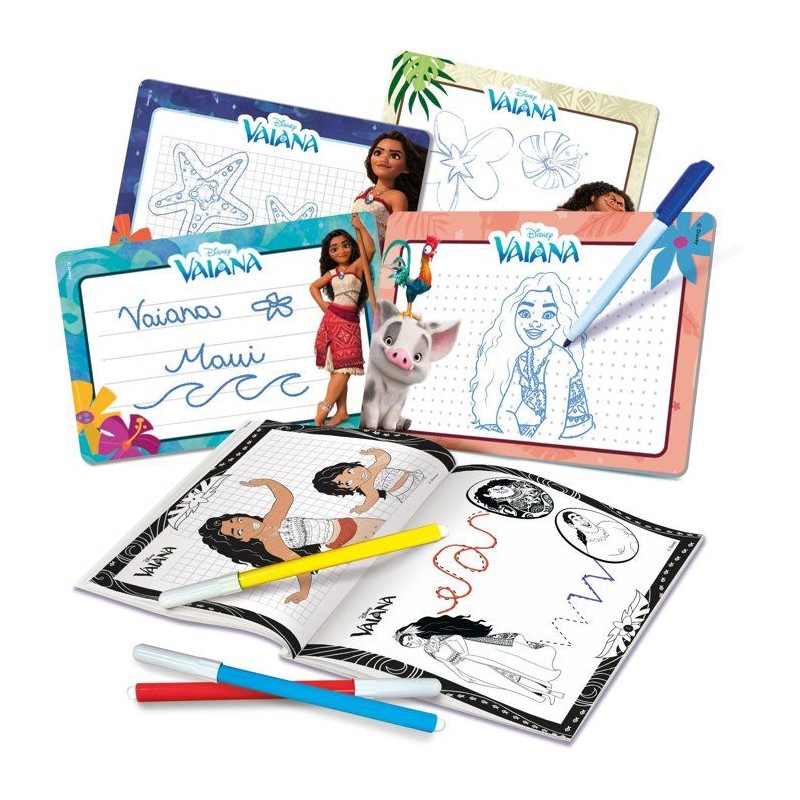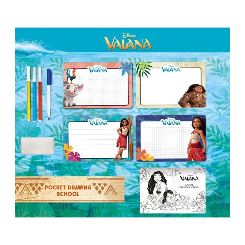 POCKET STUDIO DE DESSIN vaiana 2, Apprends a dessiner avec Vaîana grâce a ce kit créatif amusant en version poche ! Ce sera un jeu d'enfant grâce au guide explicatif qui contient un tas de dessins organisés selon une difficulté progressive et grâce aux 4 mini ardoises effaçables. Si tu dessines dessus, tu peux effacer et recommencer a nouveau. De plus, tu peux colorier le cahier avec les feutres inclus !. A partir de 3 ans- Fabriqué en Italie