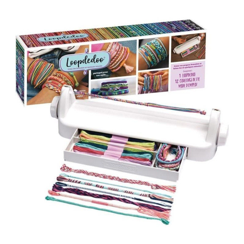 Libere ta créativité avec le Loopdedoo, le métier a tisser moderne pour créer des bracelets d'amitié uniques en quelques minutes. Parfait pour les enfants des 8 ans, il est facile a utiliser et idéal pour partager des moments créatifs. Compact et pret a voyager, il transforme chaque fil en oeuvre d'art a porter fierement.