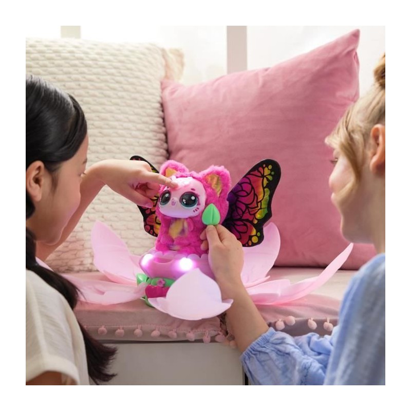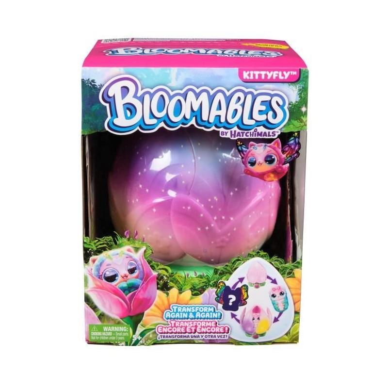 Des fleurs magiques Bloomables avec une double éclosion surprise. Donne de l'amour a ta fleur Bloomables pour la faire éclore une premiere fois. Tu découvriras une chenille trop mignonne a nourrir, chatouiller et câliner. Place ensuite ta chenille Bloomables dans sa fleur, de nombreux effets lumineux et sons t'accompagneront pour t'aider a faire éclore ta fleur magique une nouvelle fois. Découvre enfin un magnifique papillon avec des ailes colorées et joue avec lui pour découvrir des chansons et apprendre a le faire voler. Plus de 100 sons et réactions. Magique, il est possible de recommencer l'éclosion et le faire éclore a l'infini. 2 accessoires magiques (un arrosoir et une feuille) et un guide démarrage fournis. Fonctionne avec 3 piles LR6 fournies. Boîte fenetre. A partir de 5 ans.