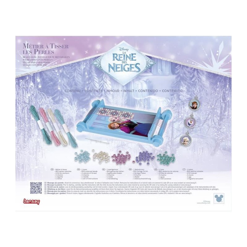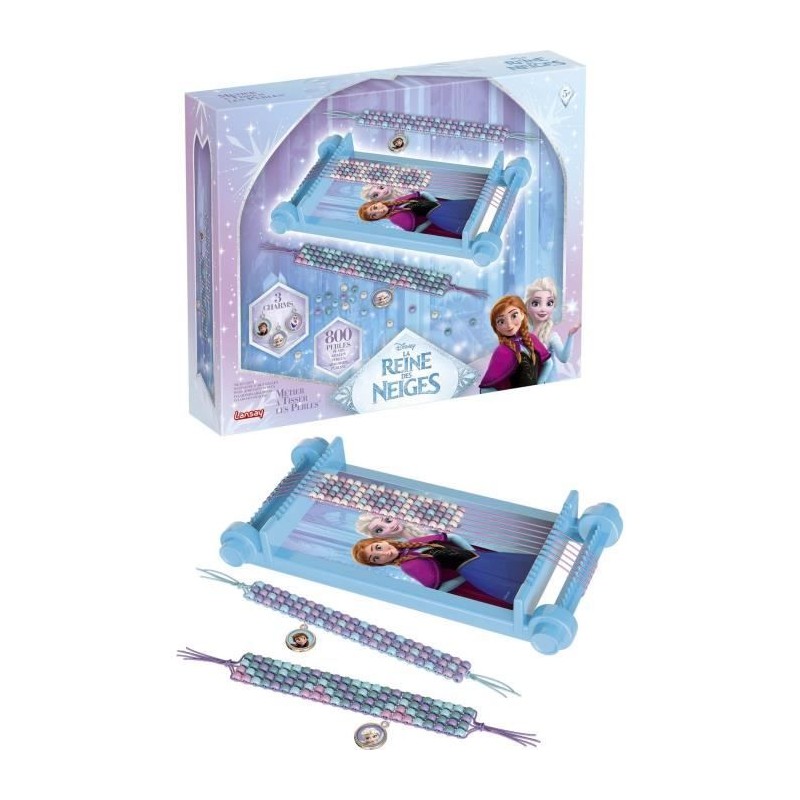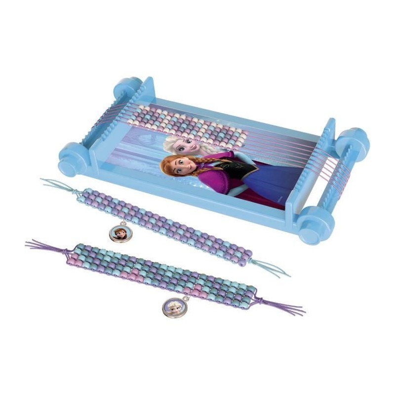 Crée de magnifiques bracelets inspirés de l'univers de la Reine des Neiges ! Avec cet atelier métier a tisser. tu pourras réaliser des bracelets colorés et uniques. Enfile de superbes perles et personnalise tes créations avec des perles de multiples couleurs !
