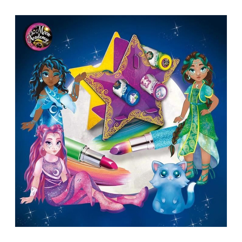 Découvrez le kit de loisirs créatifs THE MOON ACADEMY pour créer des rouges a levres colorés et parfumés. Ce kit comprend des composants variés, des tubes pour conserver vos créations, et des accessoires pratiques. Idéal pour développer la créativité des enfants a partir de 8 ans, il offre une expérience ludique et éducative.