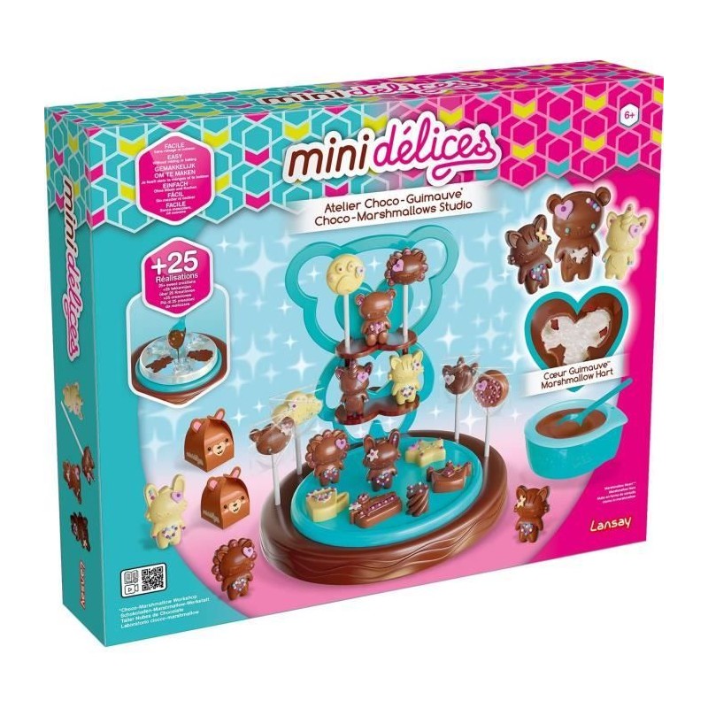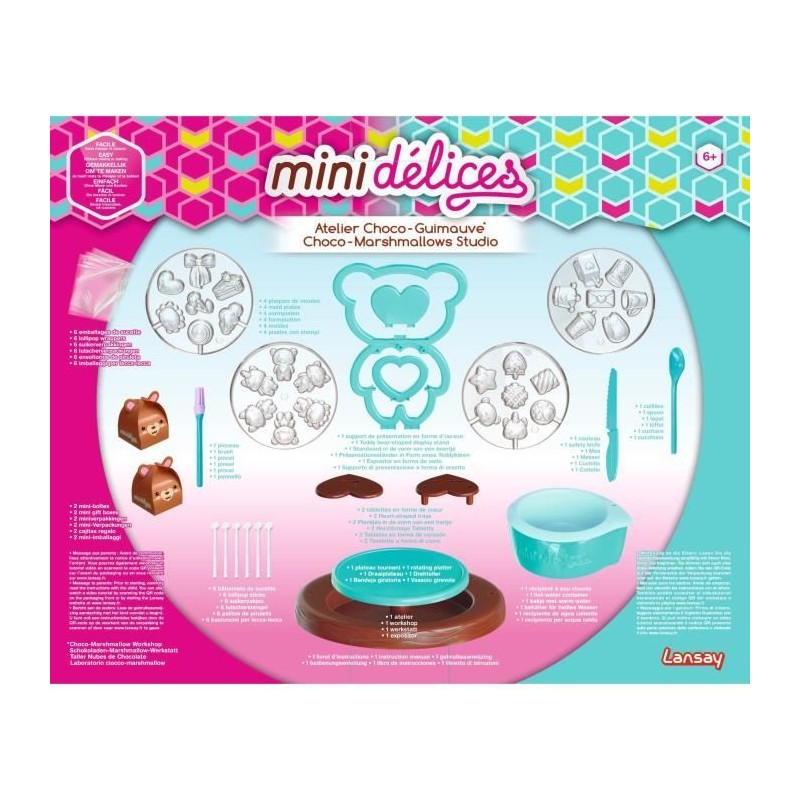 Crée des animaux en chocolat et guimauve avec l'Atelier Choco-Guimauve de LANSAY. a partir de 6 ans, ce jeu créatif permet de fondre du chocolat, de mouler et de décorer tes créations. Inclus : moules, pinceau et mini-emballages pour offrir tes délicieuses réalisations.