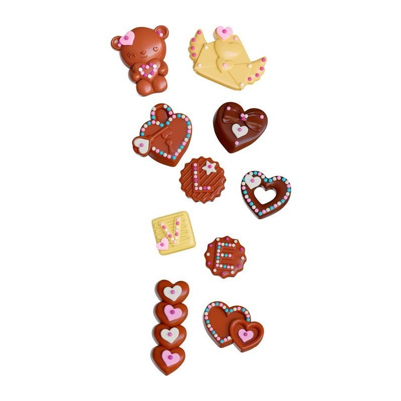 Avec ce kit, crée facilement tes chocolats en forme de coeurs ! Rien de plus facile : place quelques carrés de chocolat dans ton récipient a eau chaude, dépose ton chocolat fondu dans les moules grâce a la cuillere et place ton moule au réfrigérateur. Tu pourras ensuite les déguster ou les offrir a tes amis et a ta famille !