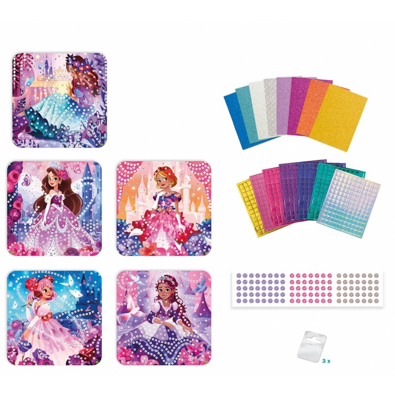 Crée 5 tableaux enchanteurs sur le theme du bal en collant des mosaiques et joyaux sur les graphismes. Une activité ludique et artistique parfaite pour les enfants des 5 ans.