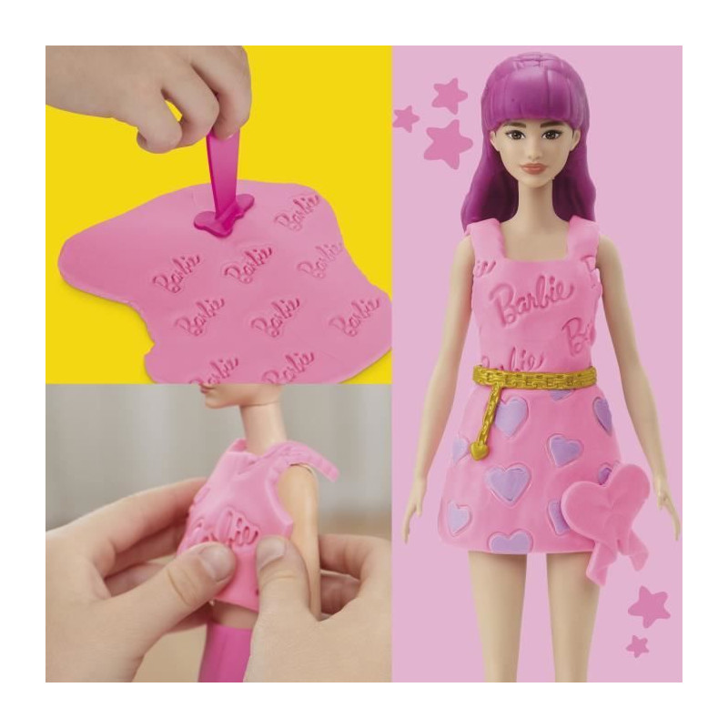 Découvrez le coffret de pâte a modeler Play-Doh Barbie Coeurs et coiffure. Ce jeu coloré stimule la créativité et l'imagination des enfants a partir de 3 ans. Comprend un coffret avec des accessoires pour créer des coiffures amusantes. Avertissement : Ne pas ingérer.