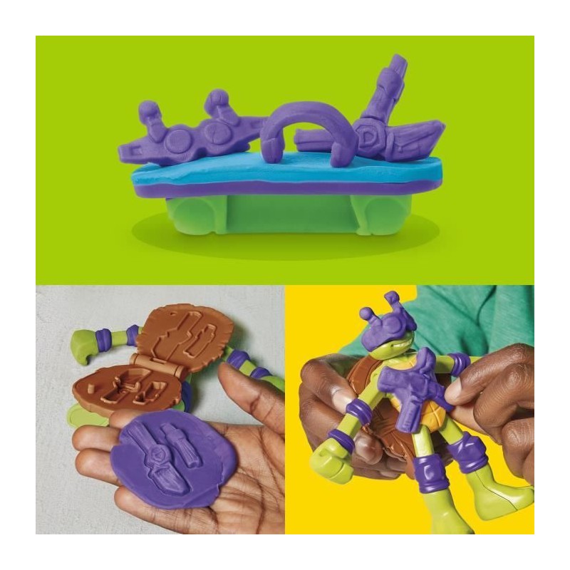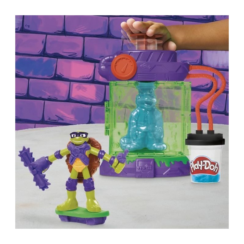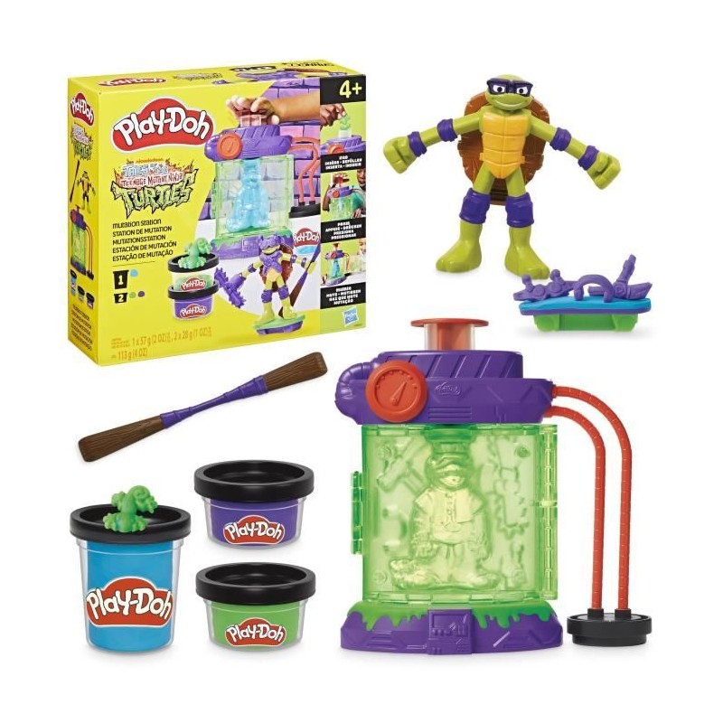 Play-Doh Les Tortues Ninja Station de mutation, coffret de pâte a modeler avec figurine Donnie flexible de 10 cm, loisirs créatifs pour enfants, des 4 ans