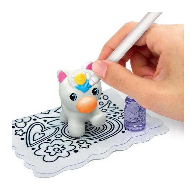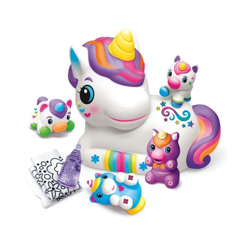 Maman et ses petits ! Tellement mignons, tellement petits, tellement moelleux et a collectionner ! Quatre adorables bébés animaux a colorier ! Une licorne, un ours, un chien ou un chat avec leurs petits. Chaque animal possede un accessoire surprise caché !