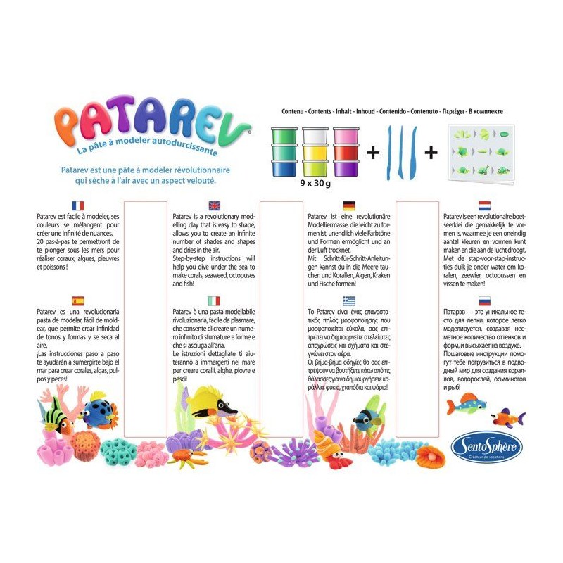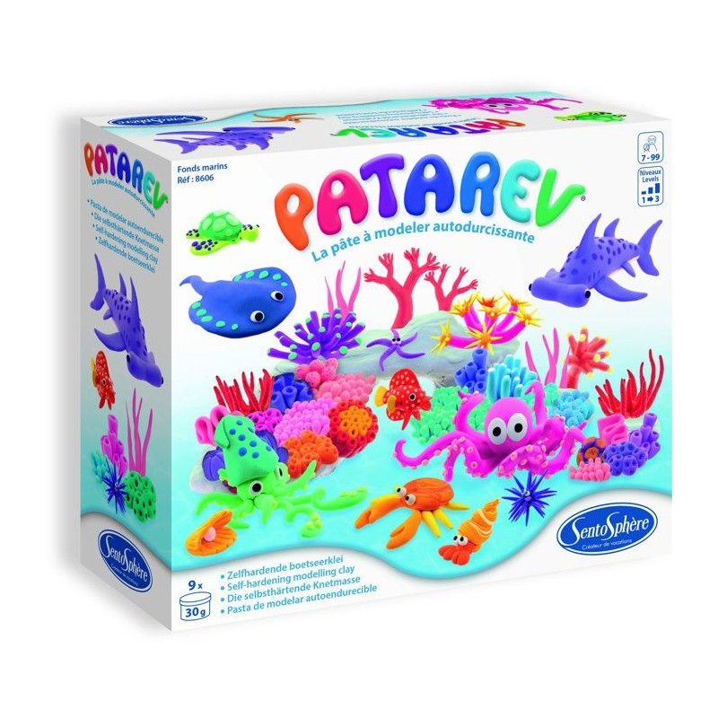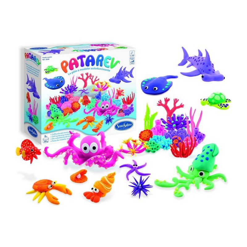 Créez les plus extraordinaires coraux, coquillages, poissons avec ce coffret de 9 couleurs vives de Patarev et qui peuvent se mélanger. 20 créations pas-a-pas sont proposées pour les débutants pour que leur univers marin devienne aussi fascinant qu'un véritable aquarium.