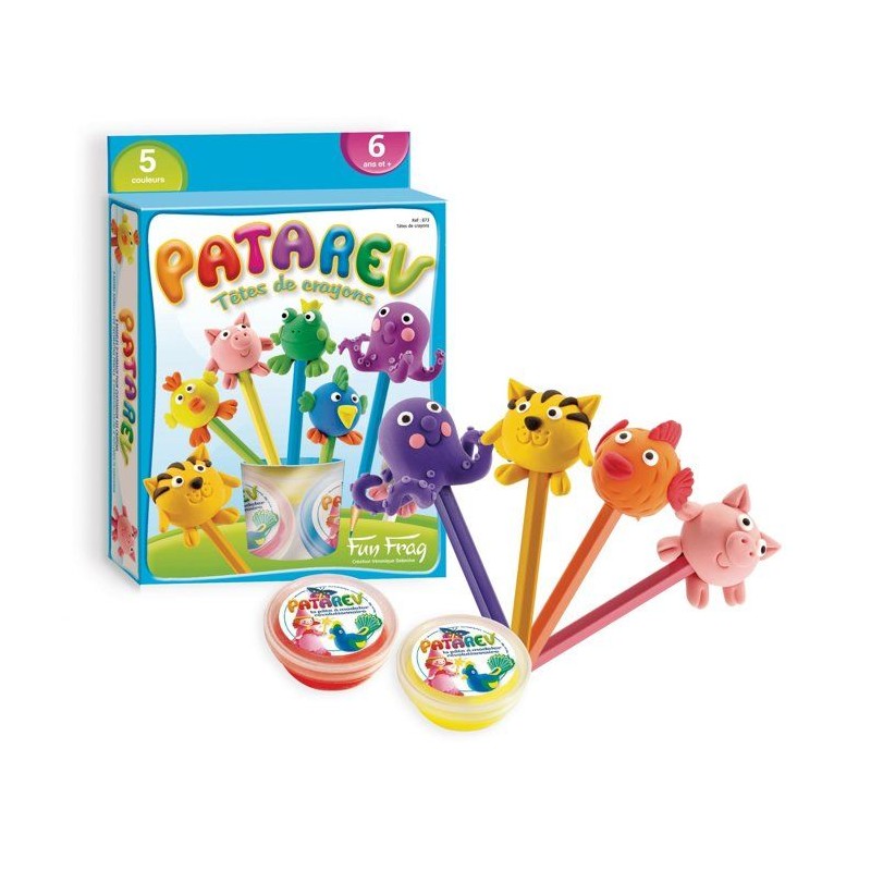 Pate a modeler - SENTOSPHERE - Patarev - Blister - Tetes de Crayon - 5 pots de couleur - 8 tetes d'animaux - Des 6 ans