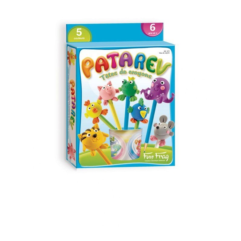 Cette boîte contient 5 pots de Patarev et un pas-a-pas détaillé, pour réaliser plus de 8 tetes d'animaux aussi amusantes et mignonnes les unes que les autres. Une idée originale pour décorer ses crayons !