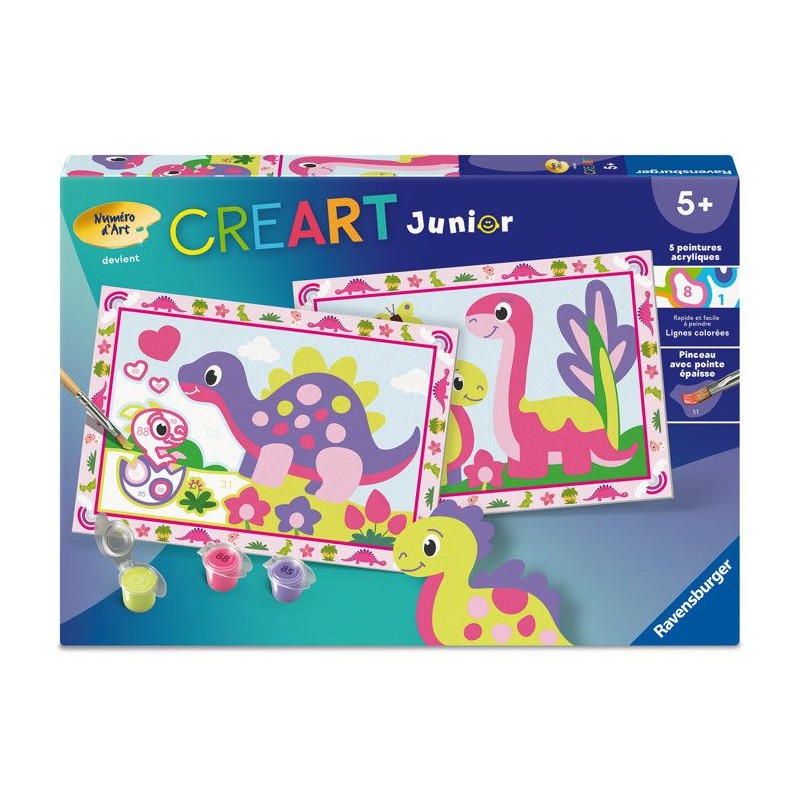 Ravensburger – CreArt Junior – Numéro d'Art – Dinosaures colorés – Kit de peinture par numéros – Des 5 ans – 1202