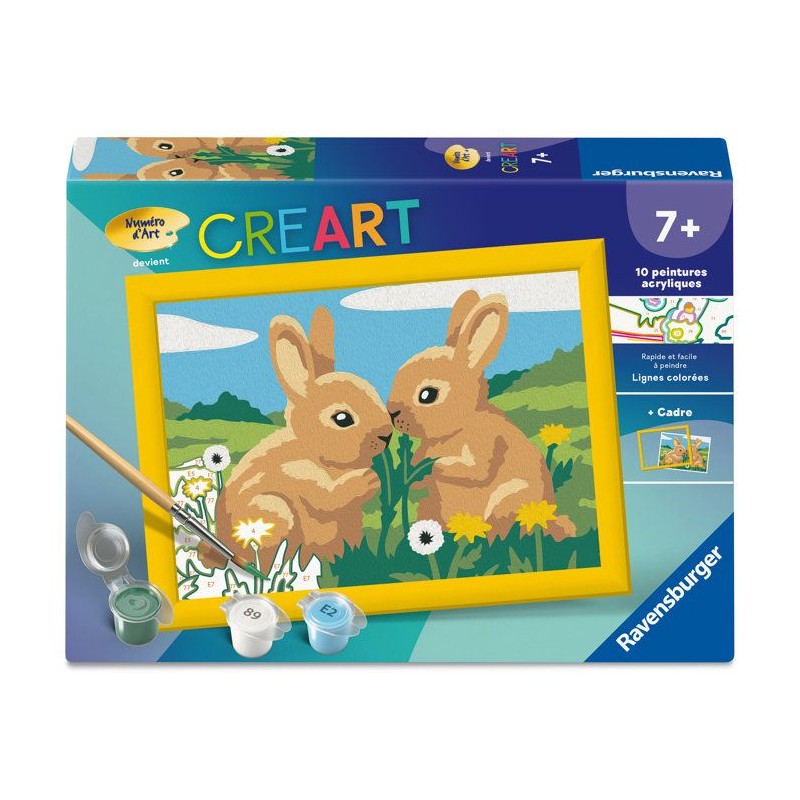 Ravensburger – CreArt Kids 13x18cm – Numéro d'Art – Lapins mignons – Kit de peinture par numéros – Des 7 ans – 120