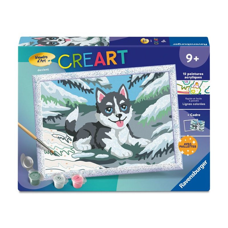Ravensburger – CreArt Kids 18x24cm – Numéro d'Art – Huski neige – Kit de peinture par numéros – Des 7 ans – 120232