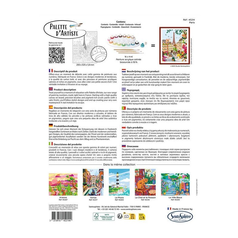 Peinture acrylique - SENTOSPHERE - Palette D'artiste - Paris - Peinture a numéro pour adulte - Tableau en carte toilée
