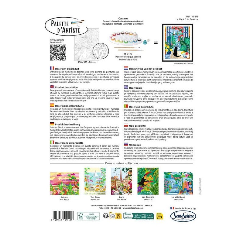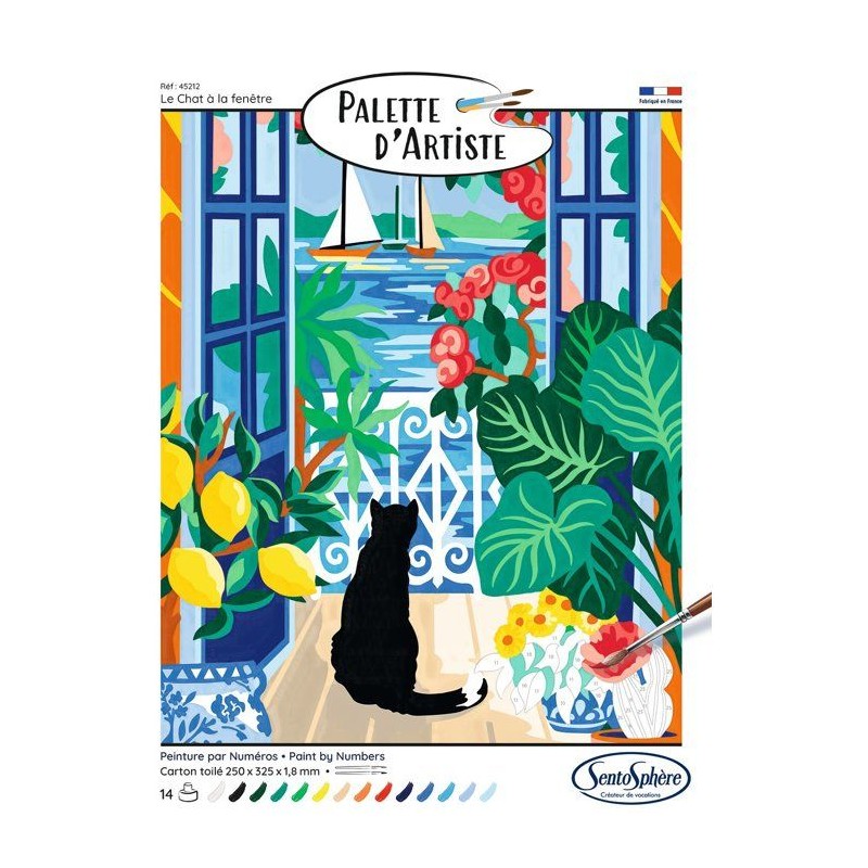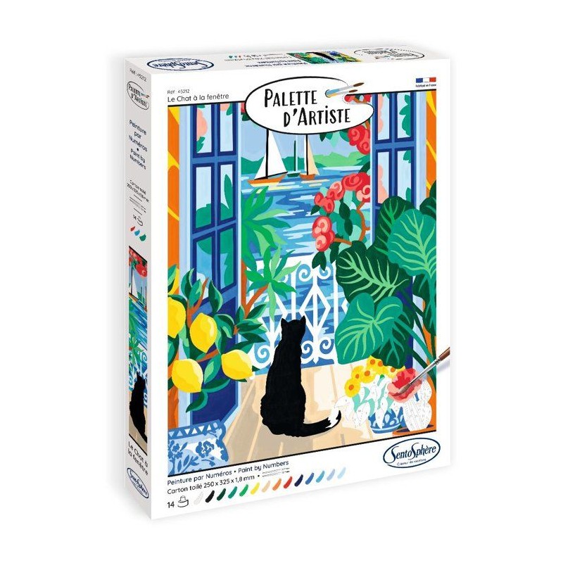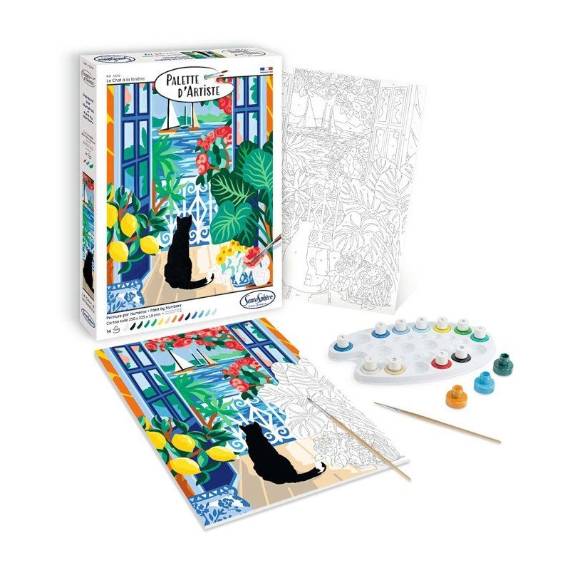 Peinture acrylique - SENTOSPHERE - Palette D'artiste - Le chat a la fenetre - Peinture a numéro pour adulte - Tableau toilée