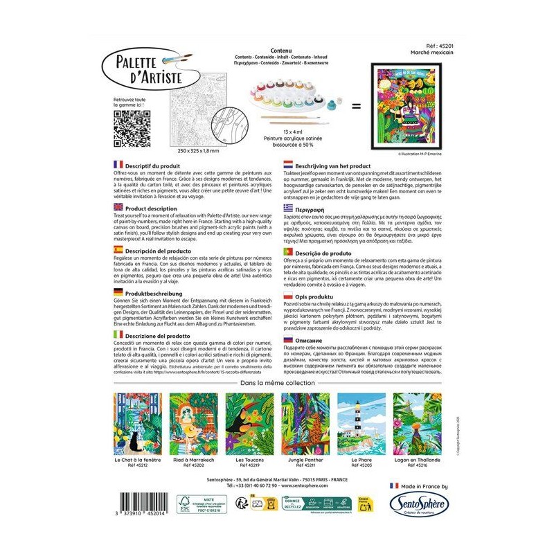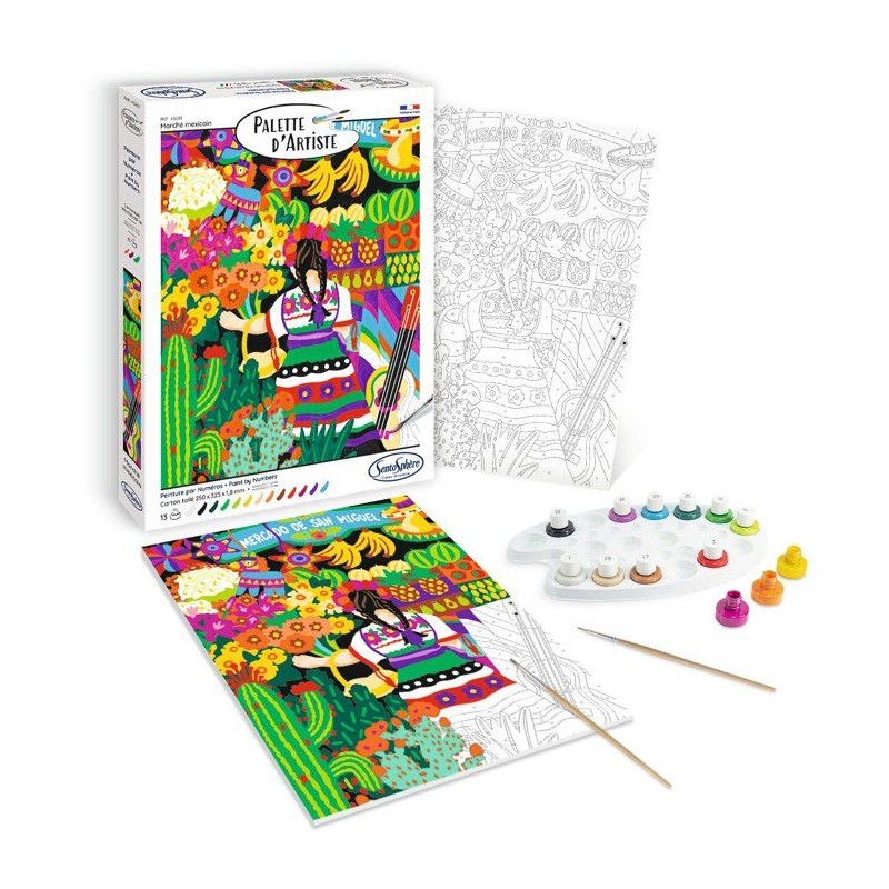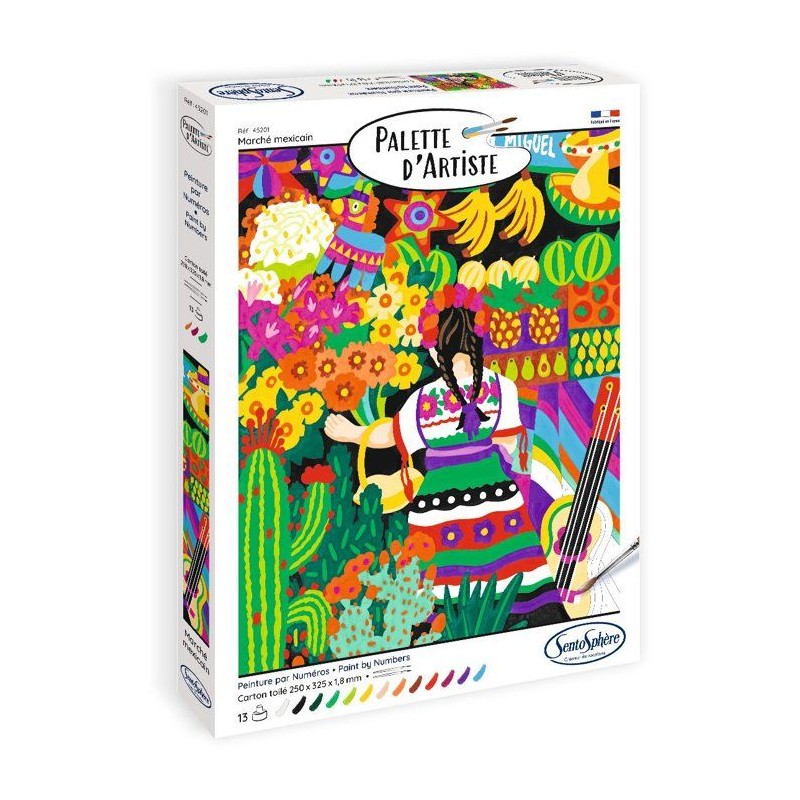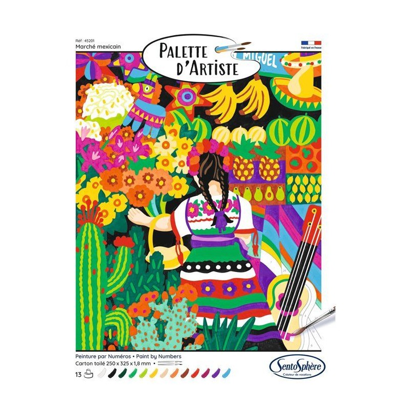 Peinture acrylique - SENTOSPHERE - Palette D'artiste - Marché Mexicain - Peinture a numéro pour adulte - Tableau toilée