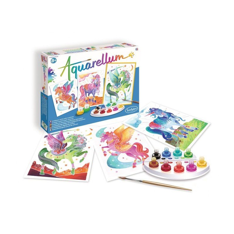 Peinture aquerelle - SENTOSPHERE - Aquarellum - Licornes et Pégases - 9 couleurs - Sertissage sur papier Vélin - Des 7 ans
